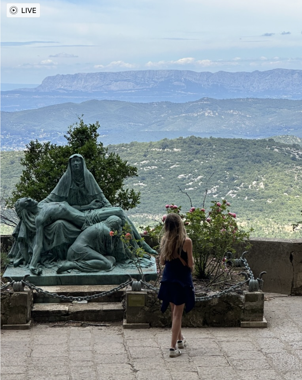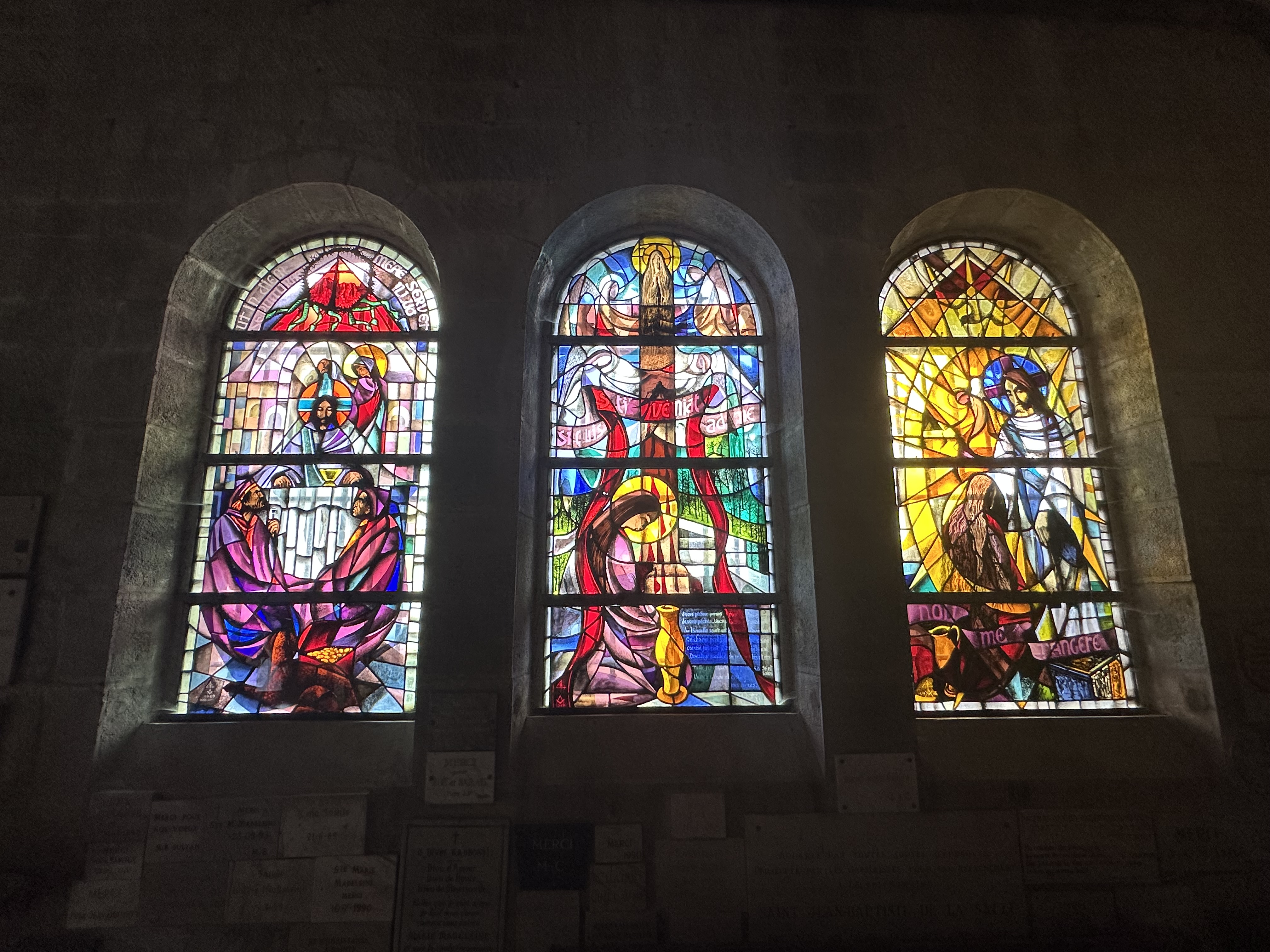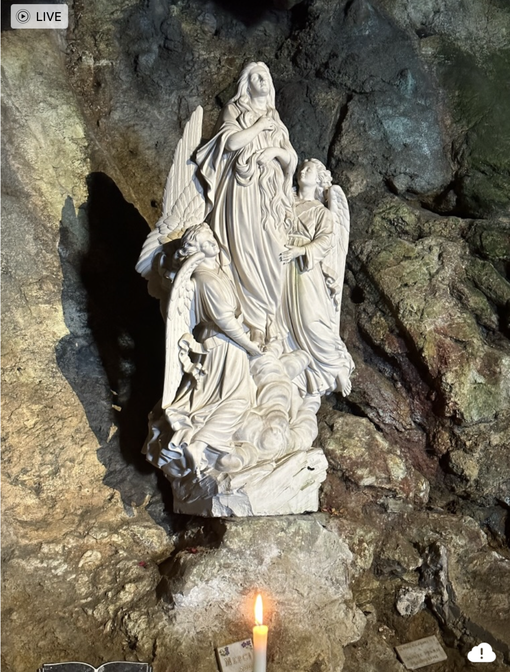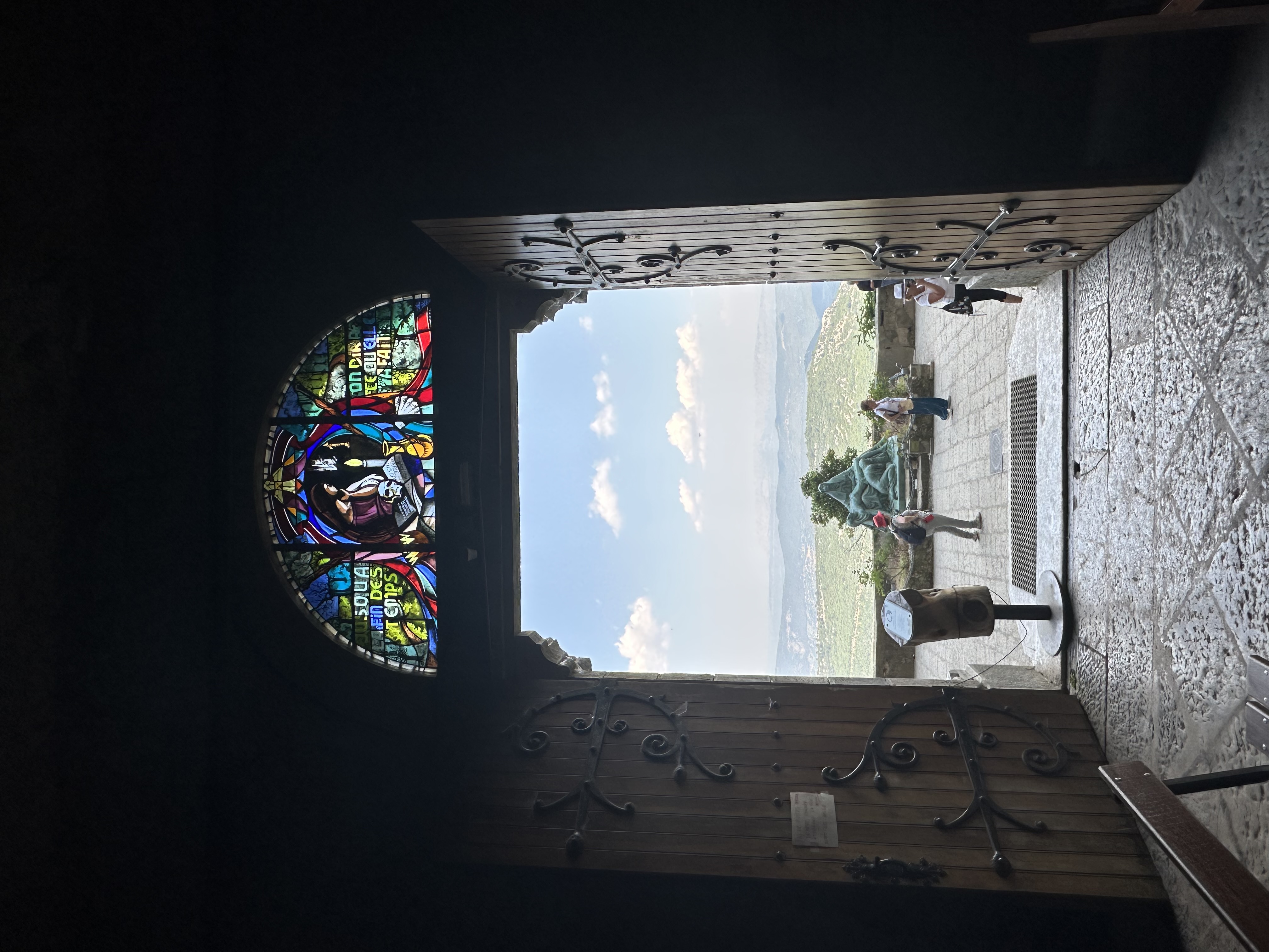 The special energy in the air of Magdalene's Ascension Cave is palpable. You are speechless when you step into the Grotte. Lit with candles, it is utterly beautiful and peaceful. Gorgeous stained glass windows transmute the Sun's light in this place of silence and reflection. Then there is the breathtaking view of the valley below, which is absolutely Spectacular. Mary's presence is everywhere.
