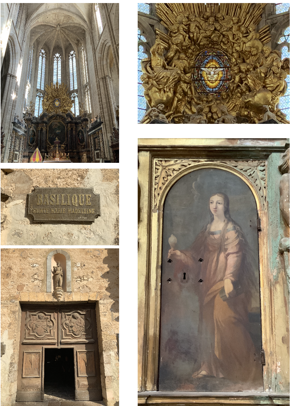 We will visit the crypt to see the stone coffin in which the Magdalene's body was interred for many centuries. Her skull is enshrined and on display in the crypt in a golden display. A walk around the cloisters will fill our spirit.