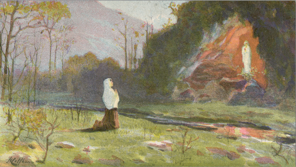 Beginning in 1858, a common French girl, Bernaarde-Marie Soubirous, claimed to have had numerous encounters with a mysterious "White Lady", Mary, in a grotto at the foot of the Pyrenees Mountains. Mary created a healing spring and asked Bernadette to build a church. Tens of millions of people have made pilgrimages to the spring in search of healing.